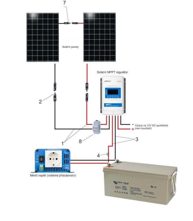 Spolu se solárním systémem dostanete podrobný návod s popisem jednotlivých komponent a schéma zapojení.