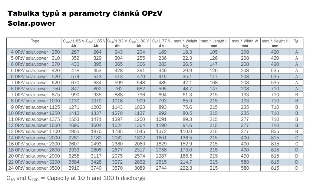 V OPzV solar.power baterie jsou baterie s pevným elektrolytem ve formě GELU. Konstrukce hermeticky uzavřené baterie Hoppecke OPzV solar.power baterií jsou zcela bezúdržbové s ohledem na doplňování vody,