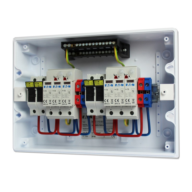 Kompletní certifikovaný rozvaděč chránící DC vedení o max. napětí 1000V. Tento typ je určen pro povrchovou montáž a obsahuje dvoupólový pojistkový odpojovač a svodič přepětí pro ochranu jednoho stringu fotovoltaického systému. Jednotlivé komponenty umístěné na DIN liště jsou mezi sebou již propojeny, což zajišťuje úsporu času při montáži. 1x MPPT. Svodič přepětí třídy T2.
