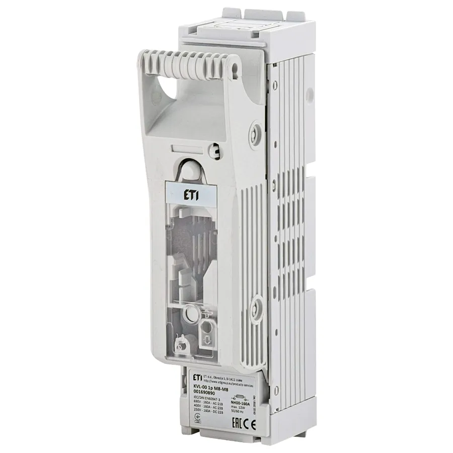 Řadový odpínač KVL-1 M10-M10 1-pólový, In = 250A, Un = 690V DC / 440V DC, pro pojistky NH1, montáž na panel.